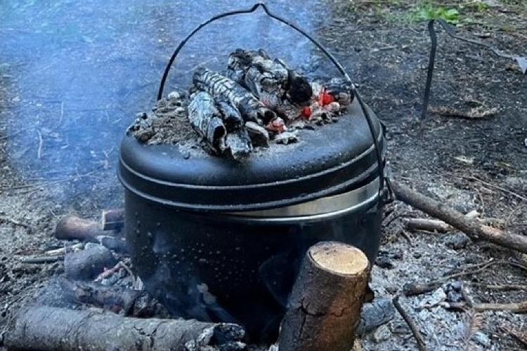 Outdoor Übernachtung im Biwak, Kochen über dem Feuer, Feuer machen ohne Streichhölzer oder Feuerzeug,